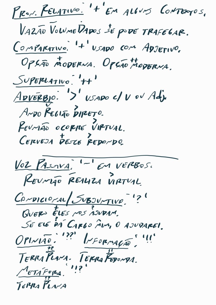 Abaixo, bons exemplos de como esta linguagem ajuda a condensar texto, dando agilidade a anotações:
