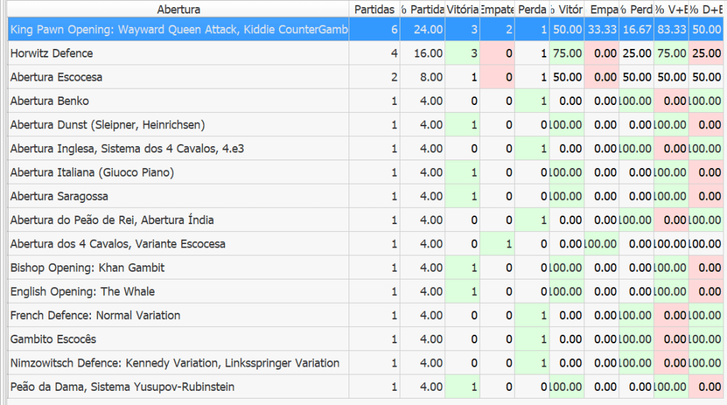 As descobertas foram obtidas exportando as 50 últimas partidas que joguei até 8 de outubro de 2024, e analisadas no Lucas Chess. Não deve ter nada de muito novo aqui para um jogador comum, mas qualquer narrativa fica interessante com dados.